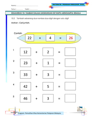 Program Pemulihan Khas disediakan bagi membantu murid-murid di sekolah rendah yang menghadapi masalah. Wang hingga RM 100 Standard. LEMBARAN KERJA MATEMATIK PEMULIHAN KHAS.